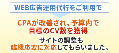 一番印象的だったのは、「小回りが利く対応」です。広告運用以外にもホームページを触ってもらえた点など、非常にスムーズで良かったと感じています。弊社事情で実施しませんでしたが本来は、ホームページを100万円ほどかけてリニューアルも依頼しようかと思ってました。