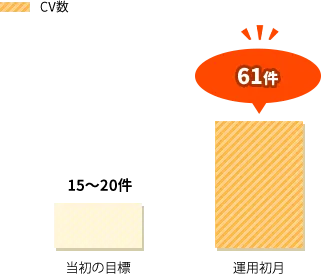 予算に対し、必要なCV数、成約数を明確化したのちに広告を配信。想定ターゲティングとそれに合わせて綿密に設計したLPがユーザーに刺さり、初月から目標を大幅に上回る成果を創出。