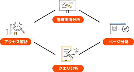 通常の広告代理店では、広告管理画面とにらめっこして改善していくことがほとんどです。CMSproはサイトのアクセス解析やヒートマップ分析、自然検索のクエリまで確認し、多角的な分析で成果最大化を目指します。
