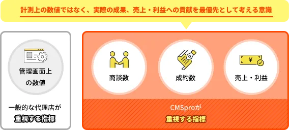 当社でのお客様事業の理解は勿論、お客様にも正確に状況を把握いただくことで、より的確なPDCAを実行することが可能です。CMSproのどこよりも積極的なコミュニケーションは間違いなく成果の最大化につながります。